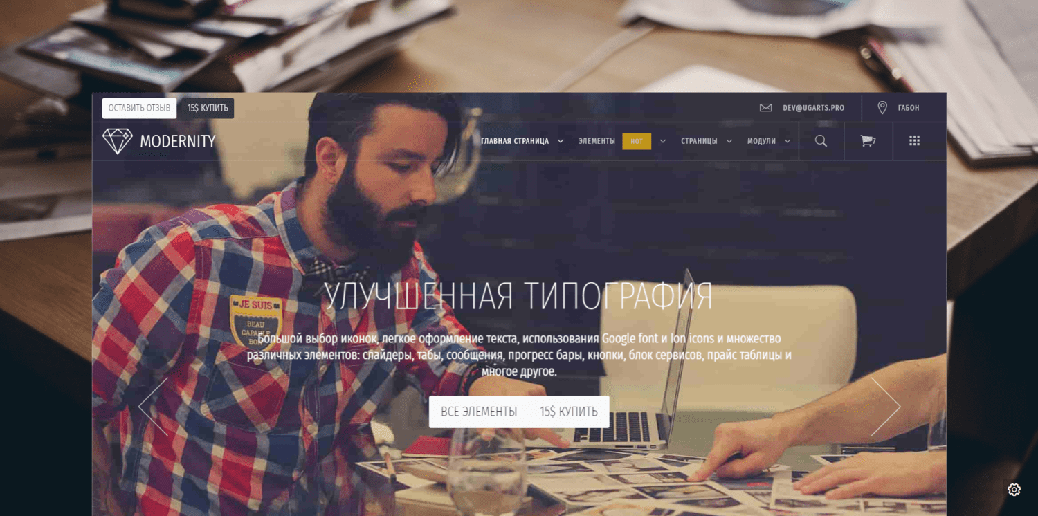 В шаблоне MODERNITY большое внимание уделено топбару и меню. Мы любим удобное редактирование